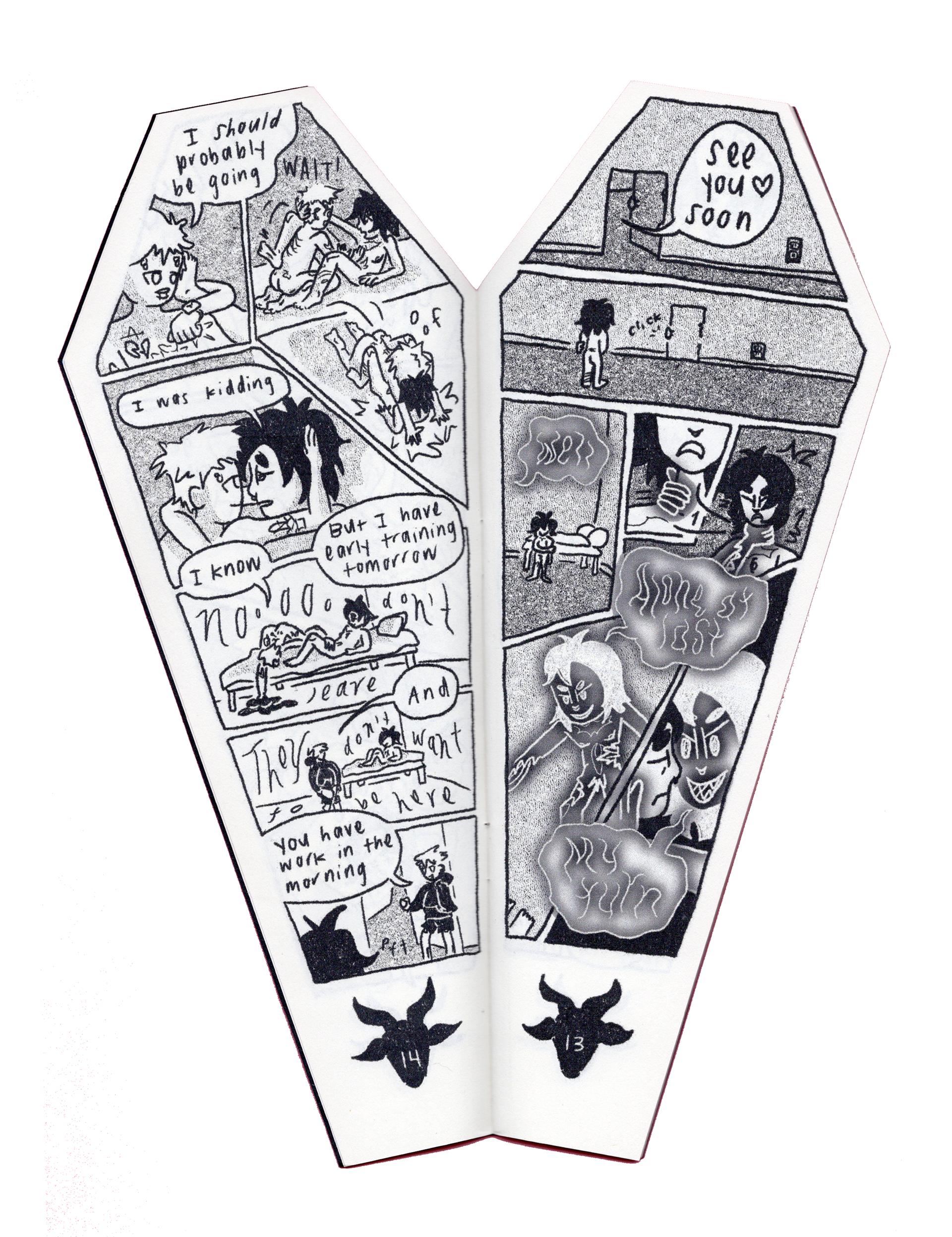 Here Lies My Hopes and Dreams (2025) is a 28 page existential horror comic disguised as erotica following a burnt out barista trying to make art after graduation. It is the first comic I made after graduation!